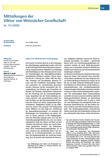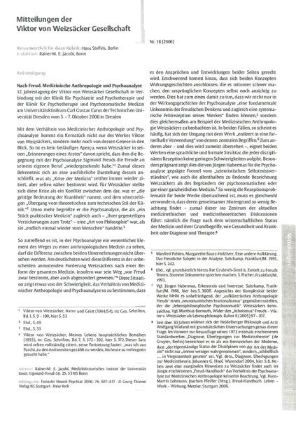 Die Mitteilungen der Viktor von Weizsäcker Gesellschaft erscheinen seit 1997 als eigenständige Rubrik in der Zeitschrift "Fortschritte der Neurologie, Psychiatrie" im Georg Thieme Verlag Stuttgart.